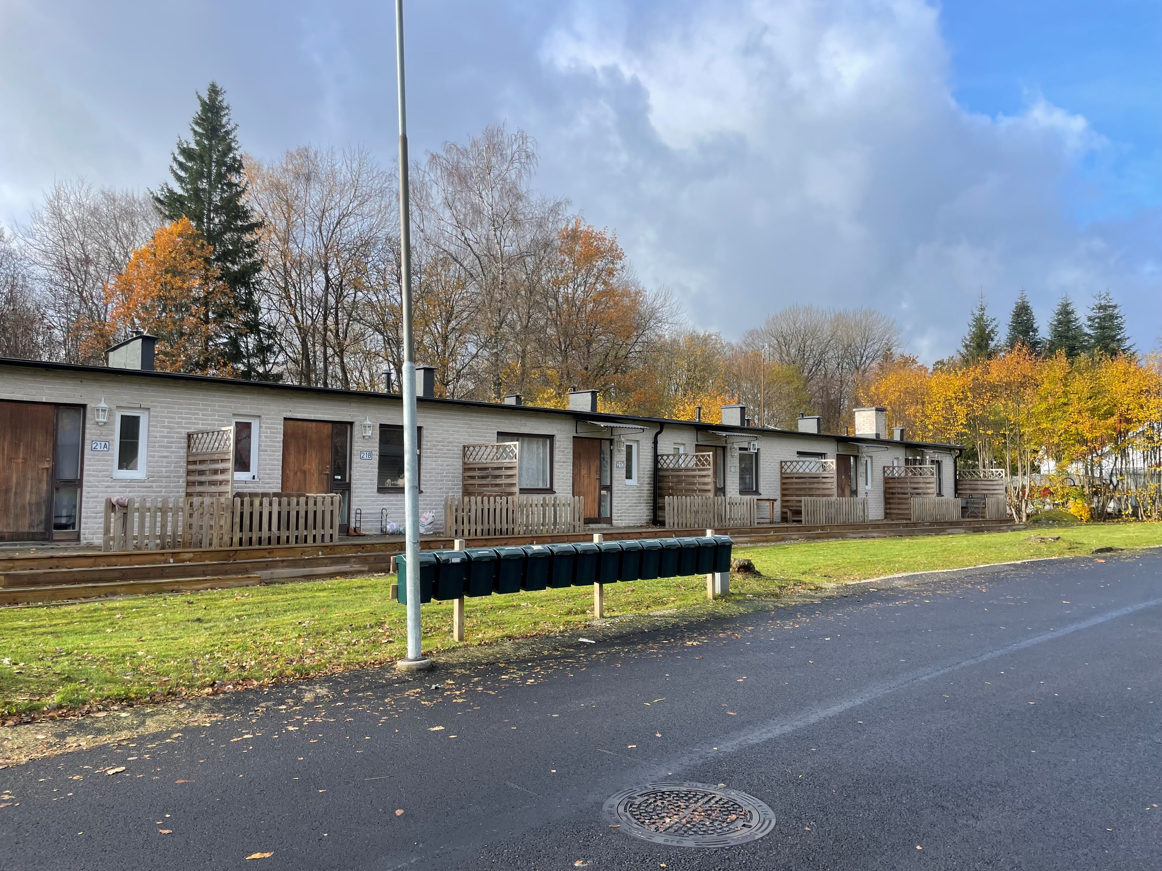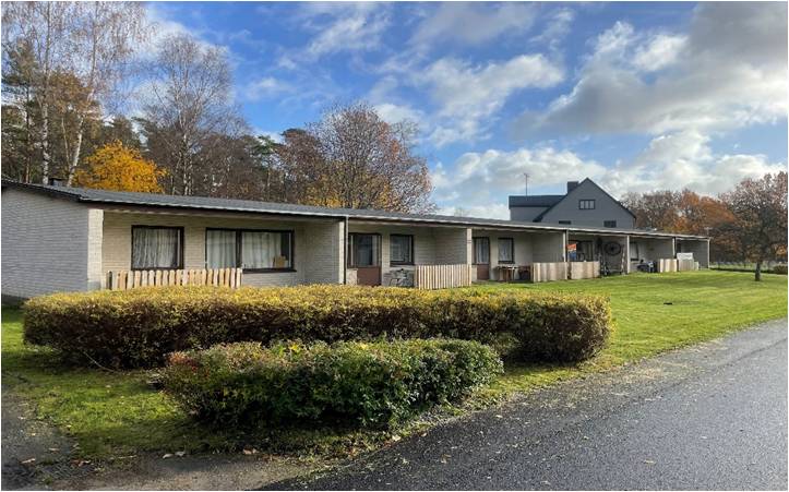 Fastigheterna består av två enplansbyggnader med 13 lägenheter, varav 11 är nyrenoverade.